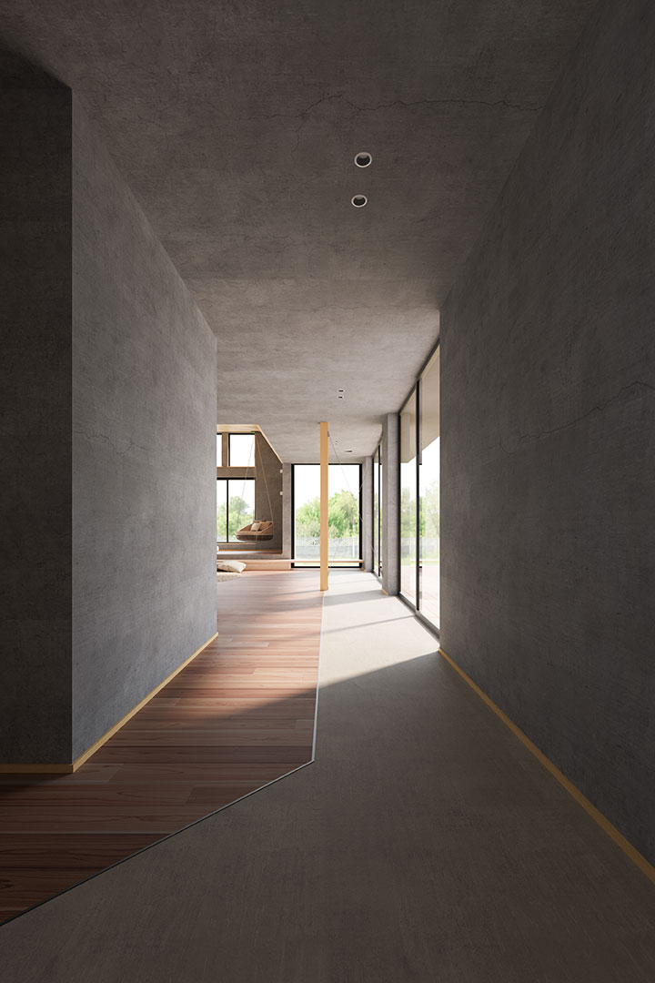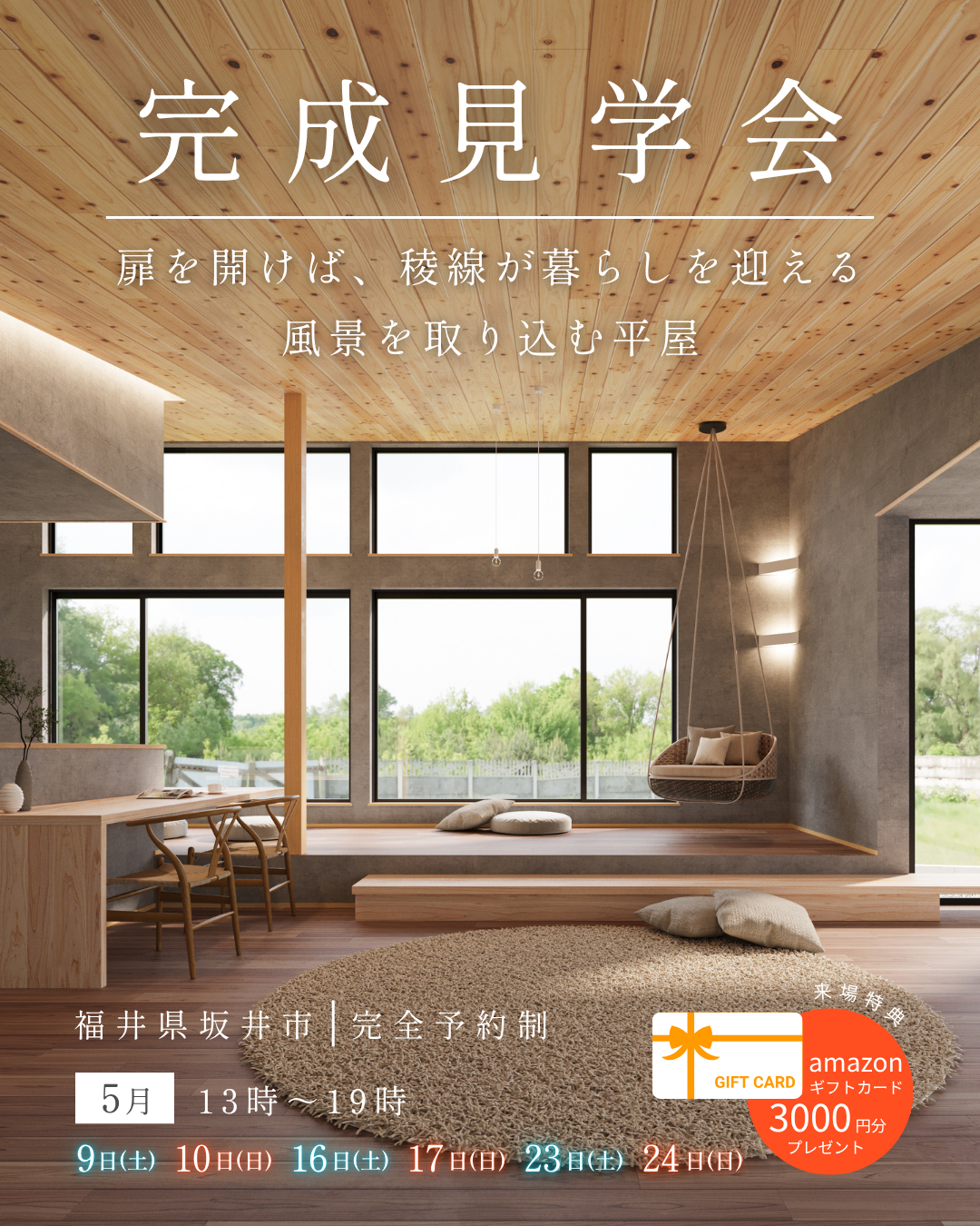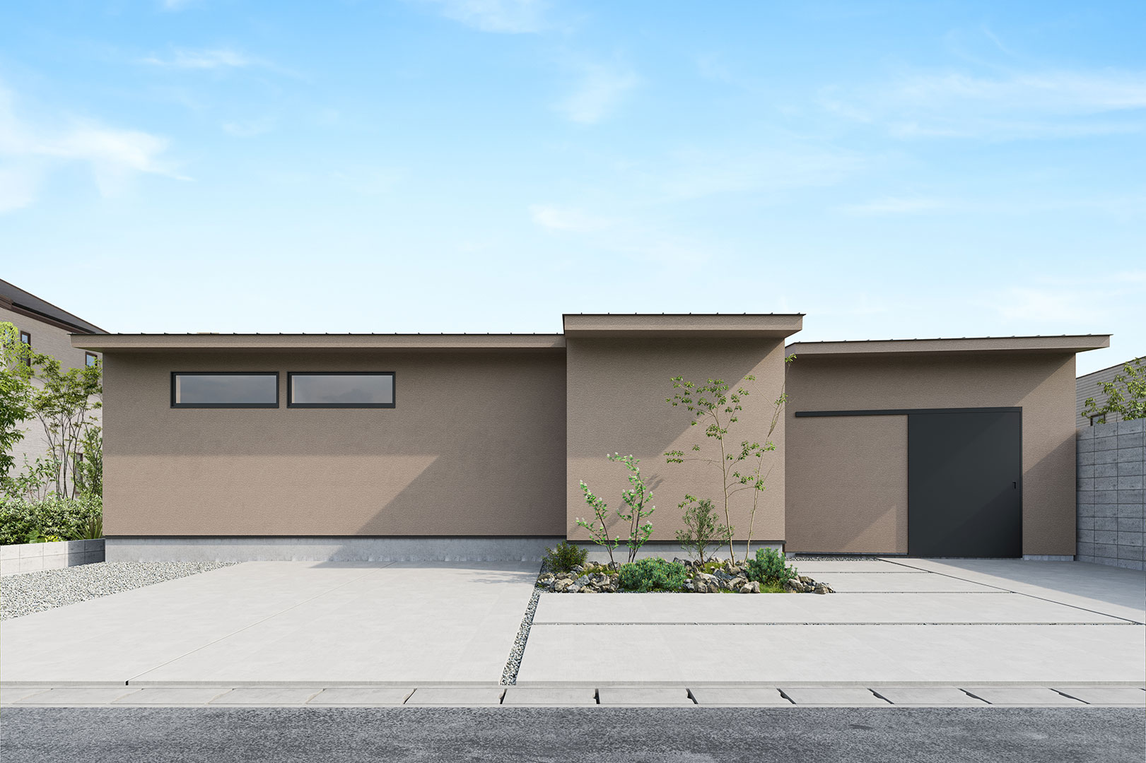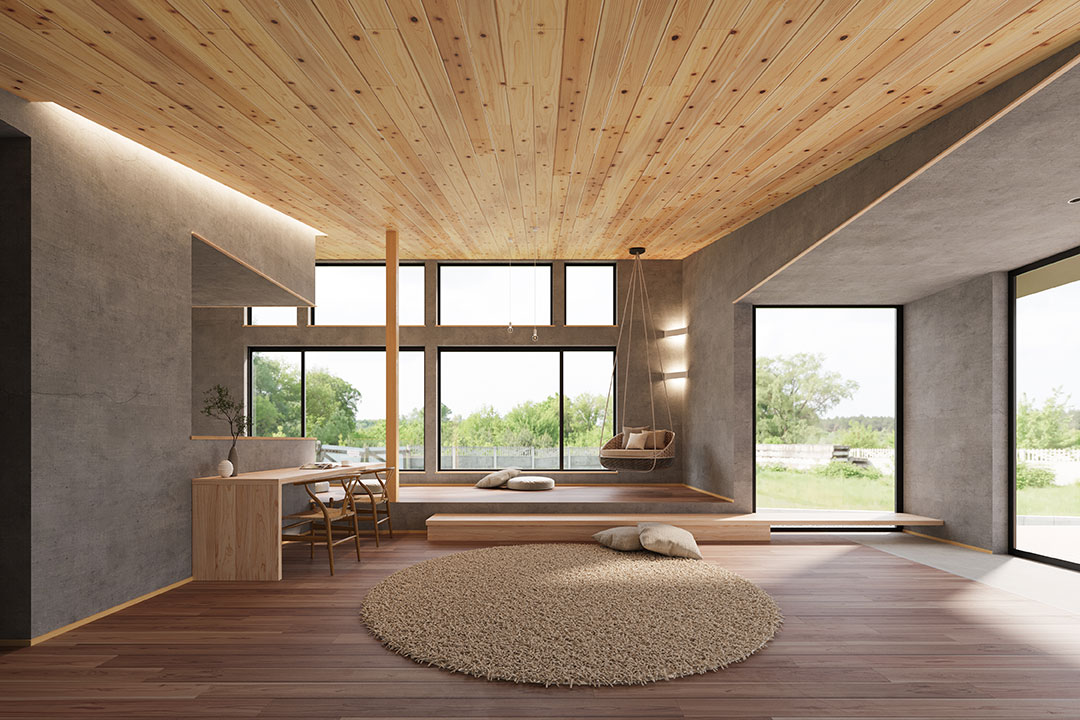 周囲の視線が気になる方向は壁で守り、絶景に向かっては大胆に開く。そんなメリハリのある設計により、日中はカーテンを引かなくても外の世界とゆるやかに繋がれる、開放的な平屋が完成しました。」
